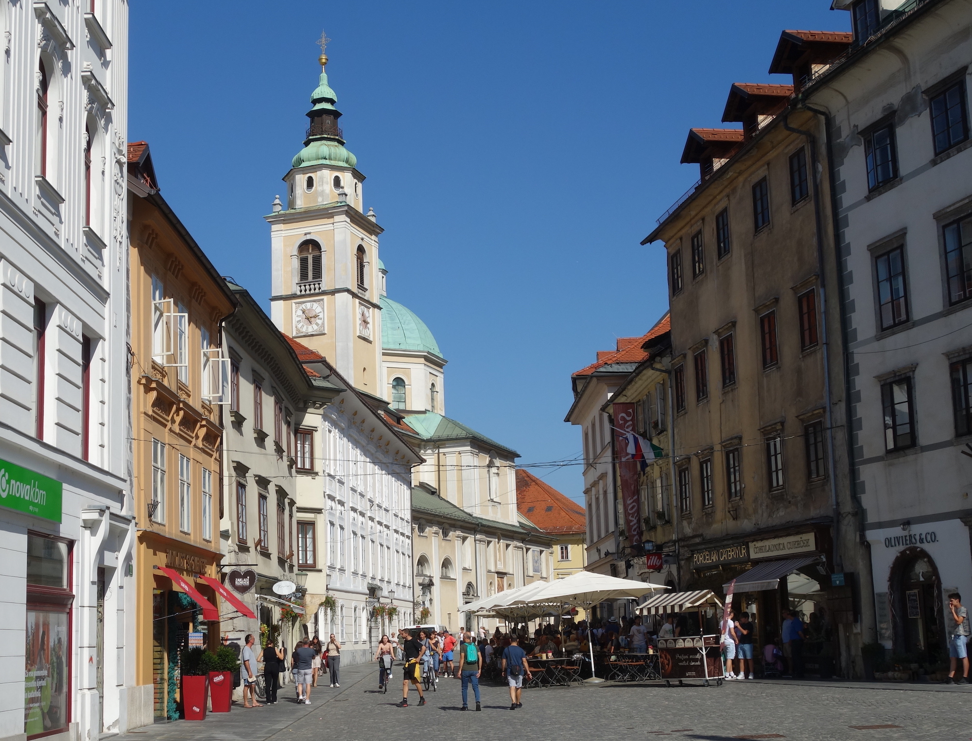Ljubljana's town square is surrounded by photogenic cobbled streets lined with elegant period architecture painted in pastel colours.